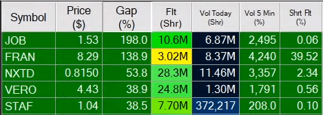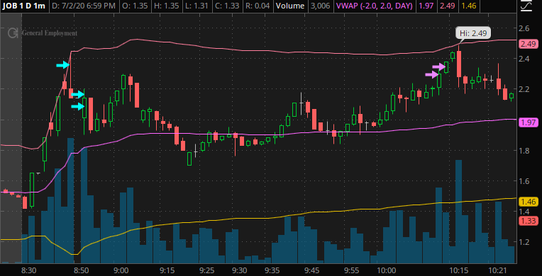 It’s Thursday morning and I will admit that I didn’t wake up at my usual 7:30 or 8:00 am Central Time, I stayed in bed longer then I would have liked too. When I opened my eyes, I saw that it was 8:46 am Central Time so I forced myself out of bed and opened my laptop because it was going to take too long to turn on my desktop and I didn’t want to waste any more time. I replayed the Warrior Trader YouTube stream to see which stocks was at the top of the gap scanner. I found it to be the stock symbol JOB and I pulled up the chart and saw that it had jumped up around $.90 since the open. I missed out on this profit because I didn’t get up in time. Here’s an example of what I mean. If I took a position of 400 shares on this stock from the opening, I would be looking at close to a $400 gain in just 20 minutes of trading. I hope my mistakes, as small as not waking up on time, show you that the market will move with you or without you. So, try your hardest to make the best effort to stick to your plan and your schedule so you don’t miss the plane when it takes off!